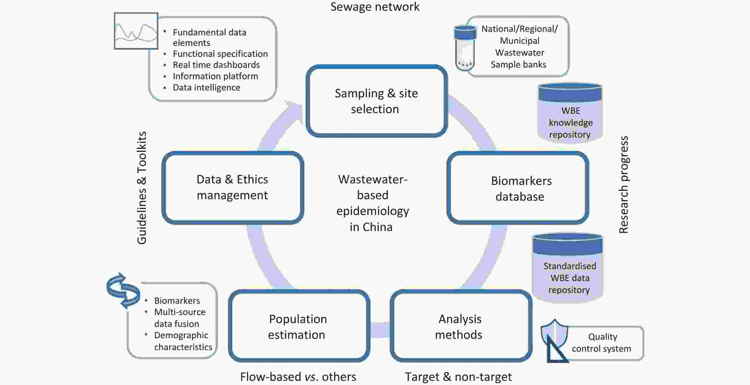 Wastewater-based epidemiology has emerged as a transformative surveillance tool for estimating substance consumption and monitoring disease prevalence, particularly during the COVID-19 pandemic. It enables the population-level monitoring of illicit drug use, pathogen prevalence, and environmental pollutant exposure. In this perspective, we summarize the key challenges specific to the Chinese context: (1) Sampling inconsistencies, necessitating standardized 24-hour composite protocols with high-frequency autosamplers (≤ 15 min/event) to improve the representativeness of samples; (2) Biomarker validation, requiring rigorous assessment of excretion profiles and in-sewer stability; (3) Analytical method disparities, demanding inter-laboratory proficiency testing and the development of automated pretreatment instruments; (4) Catchment population dynamics, reducing estimation uncertainties through mobile phone data, flow-based models, or hydrochemical parameters; and (5) Ethical and data management concerns, including privacy risks for small communities, mitigated through data de-identification and tiered reporting platforms. To address these challenges, we propose an integrated framework that features adaptive sampling networks, multi-scale wastewater sample banks, biomarker databases with multidimensional metadata, and intelligent data dashboards. In summary, wastewater-based epidemiology offers unparalleled scalability for equitable health surveillance and can improve the health of the entire population by providing timely and objective information to guide the development of targeted policies.