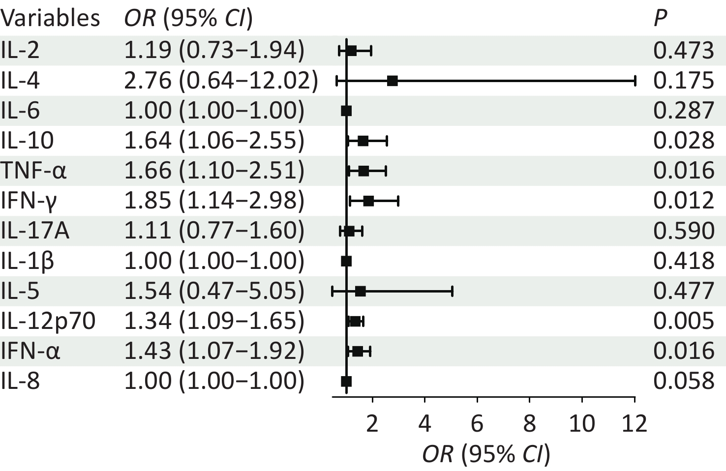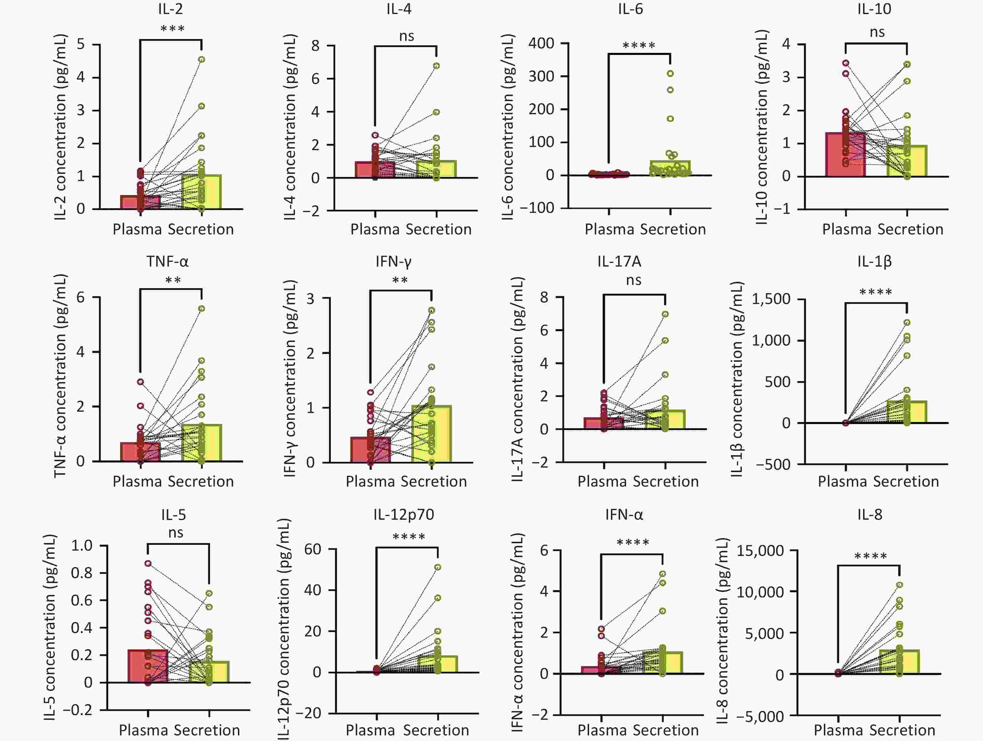 Objective The aim of this study was to analyze the correlation between the levels of 12 cytokines in the cervical microenvironment and cervical intraepithelial neoplasia in patients with high-risk human papillomavirus (HR-HPV) infection. Methods Female patients (n = 73) with HR-HPV infection were enrolled and divided into a high-grade squamous intraepithelial lesion (HSIL) group (n = 33) and a non-HSIL (N-HSIL) group (n = 40), which include low-grade squamous intraepithelial lesions and inflammation. Healthy screening subjects (n = 31) with negative HR-HPV results were enrolled as a control group. We examined contemporaneous plasma and secretory cytokines from 25 study subjects to investigate the difference between systemic cytokine profiles and the local microenvironment immunity using the Wilcoxon matched-pairs signed rank test. The 12 cytokines from cervical secretions were compared between the three groups using the Mann-Whitney test, and logistic regression was used to analyze HSIL and N-HSIL. Results There were statistical differences in eight cytokines (IL-2, IL-6, TNF-α, IFN-γ, IL-1β, IL-12p70, IFN-α, and IL-8) between cervical secretion and plasma of the same patient, and seven cytokines were statistically different between the control and other two groups. We selected four independent variables (TNF-α, IFN-γ, IL-12p70, and IFN-α) commonly identified by univariate regression analysis and non-parametric tests for multivariate logistic regression analysis. Based on this model, HSIL could be predicted in patients with HR-HPV infection, with the area under the curve being 0.76. Conclusion The systemic cytokine profile cannot reflect the local microenvironment immunity, and the occurrence of HSIL is related to the cytokine levels in the cervical microenvironment.