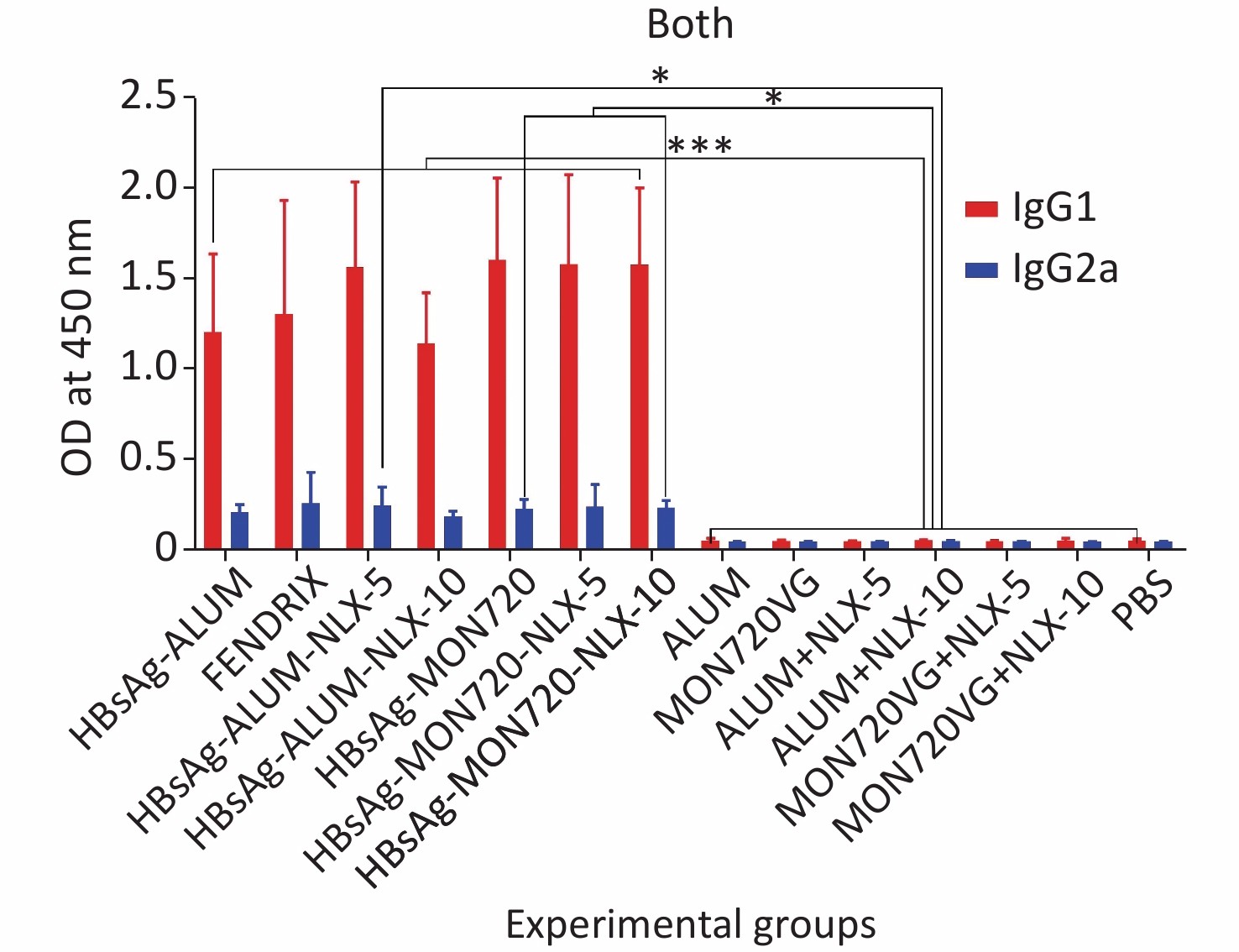 Objective This study aimed to investigate the effects of Montanide ISA-720 and Naloxone (NLX) in Hepatitis B surface antigen (HBsAg) vaccine formulation on cytokine and long-lasting antibody responses.Methods First, the HBsAg was formulated in Montanide ISA-720 adjuvant and Naloxone at 5 and 10 mg/kg. The experimental mice were immunized three times at a 2-week interval, and then IL-4, IL-2, TNF-α, and IFN-γ cytokines; long-lasting IgG antibody responses 220 days after the last shot; and IgG1/IgG2a isotypes were assessed by ELISA.Results The HBsAg-Alum group exhibited the highest IL-4 cytokine response among the experimental groups, whereas NLX in HBsAg-MON720 vaccine formulation did not affect cytokine responses. In addition, NLX in Alum-based vaccine suppressed IL-4 cytokine response and increased the IL-2/IL-4 cytokine ratio. Moreover, HBsAg-MON720 was more potent than HBsAg-Alum in the induction of antibody responses, and NLX in Alum- and MON720-based vaccines induced long-lasting antibody responses.Conclusion NLX in Alum-based vaccine decreased IL-4 cytokine response, increased IL-2/IL-4 cytokine ratio, and improved long-lasting humoral immune responses in both vaccine formulations. Therefore, the adjuvant activity of NLX in the vaccine formulation depends on the type of adjuvant and the nature of the antigen in the vaccine formulation.