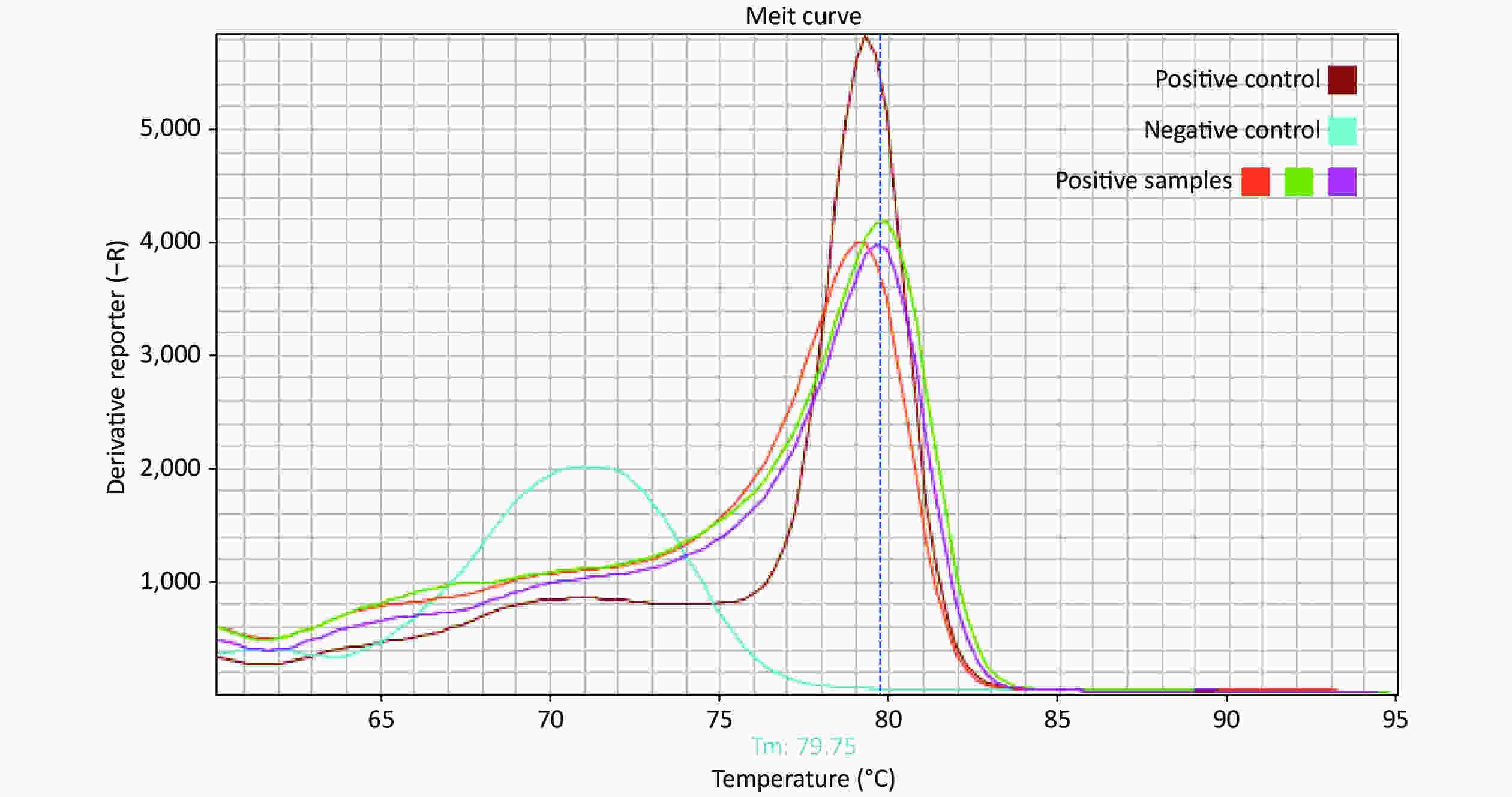 The presence of SARS-CoV-2 on high-touch surfaces was investigated during the early stages of the COVID-19 outbreak in Isfahan, Iran, from March 14 to April 8, 2020. Isfahan is the third most populous city in Iran, with a population of 1.9 million. Crowded areas in the city were selected as sampling points. Premoistened Dacron swabs in viral transport medium[6] were used to sample high-touch surfaces (Table 1). Each swab was moved in horizontal and vertical directions across a surface area of up to 700 cm2. Viral RNA was extracted from swabs using the RNeasy Mini Kit (QIAGEN, Germany) supplemented with β-mercaptoethanol and carrier RNA, following the manufacturer’s instructions. Isolated RNA was used as a template for one-step reverse transcription polymerase chain reaction (RT-PCR). A Novel Coronavirus (2019-nCoV) Nucleic Acid Diagnostic Kit (Sansure Biotech, China) employing specific primers and probes was used for detecting the ORF1ab and N genes of SARS-CoV-2. RT-PCR was also performed using a specific primer set (5’-TGTTAAACCAGGTGGAAC-3’ as the forward primer and 5’-CTGTGTTGTAGATTGCG-3’ as the reverse primer) targeting the RNA-dependent RNA polymerase (RdRP) gene of SARS coronaviruses to detect the presence of SARS-CoV-2. Each RT-PCR run included a positive control (RNA from hospitalized patients with confirmed COVID-19) and negative controls for both RNA extraction and amplification steps. Each 25 μL reaction mix contained 12.5 μL 2 X reaction mix (AMPLIQON, Denmark), 0.25 μL RT enzyme mix (QuantiTect RT-PCR, QIAGEN, Germany), 0.5 μmol/L of each primer (Tag Copenhagen, Denmark), 5 mmol/L MgCl2, 0.25 mg/mL BSA (Sigma, Aldrich) and 8 μL template RNA. The cycling parameters were RT at 50 °C for 30 min, followed by 95 °C for 15 min, 45 cycles at 95 °C for 15 s, and, finally, 57 °C for, 30 s in a Step One real-time PCR system (Applied Biosystems™, CA, USA). A melting curve analysis was performed after the PCR run to differentiate between actual products and primer dimers and eliminate the possibility of false-positive results (Supplementary Figure S1, available in www.besjournal.com). To confirm the presence of SARS-CoV-2 in surface samples, the SARS-CoV-2 gene detected in one positive sample was cloned and sequenced.