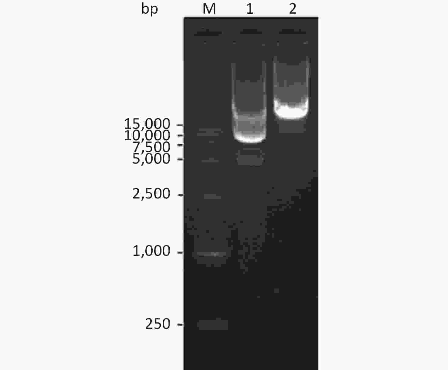 Figure 2. Agarose gel electrophoresis of the recombinant plasmids: Lane M, DNA Marker; lane 1, pET30a(+)-So recombinant plasmid; lane 2, pET30a(+)-Sot recombinant plasmid.