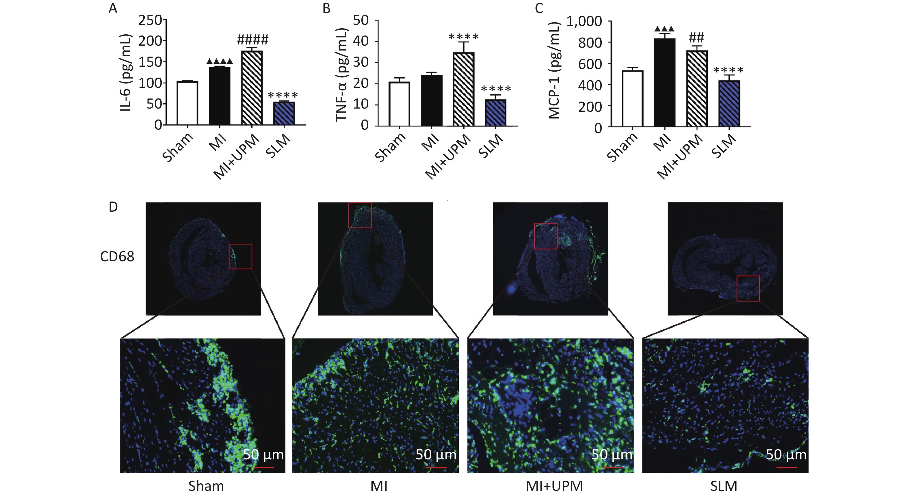 Objective Emerging evidence suggests that exposure to ultrafine particulate matter (UPM, aerodynamic diameter < 0.1 µm) is associated with adverse cardiovascular events. Previous studies have found that Shenlian (SL) extract possesses anti-inflammatory and antiapoptotic properties and has a promising protective effect at all stages of the atherosclerotic disease process. In this study, we aimed to investigated whether SL improves UPM-aggravated myocardial ischemic injury by inhibiting inflammation and cell apoptosis.Methods We established a mouse model of MI+UPM. Echocardiographic measurement, measurement of myocardialinfarct size, biochemical analysis, enzyme-linked immunosorbent assay (ELISA), histopathological analysis, Transferase dUTP Nick End Labeling (TUNEL), Western blotting (WB), Polymerase Chain Reaction (PCR) and so on were used to explore the anti-inflammatory and anti-apoptotic effects of SL in vivo and in vitro.Results SL treatment can attenuate UPM-induced cardiac dysfunction by improving left ventricular ejection fraction, fractional shortening, and decreasing cardiac infarction area. SL significantly reduced the levels of myocardial enzymes and attenuated UPM-induced morphological alterations. Moreover, SL significantly reduced expression levels of the inflammatory cytokines IL-6, TNF-α, and MCP-1. UPM further increased the infiltration of macrophages in myocardial tissue, whereas SL intervention reversed this phenomenon. UPM also triggered myocardial apoptosis, which was markedly attenuated by SL treatment. The results of in vitro experiments revealed that SL prevented cell damage caused by exposure to UPM combined with hypoxia by reducing the expression of the inflammatory factor NF-κB and inhibiting apoptosis in H9c2 cells.Conclusion Overall, both in vivo and in vitro experiments demonstrated that SL attenuated UPM-aggravated myocardial ischemic injury by inhibiting inflammation and cell apoptosis. The mechanisms were related to the downregulation of macrophages infiltrating heart tissues.