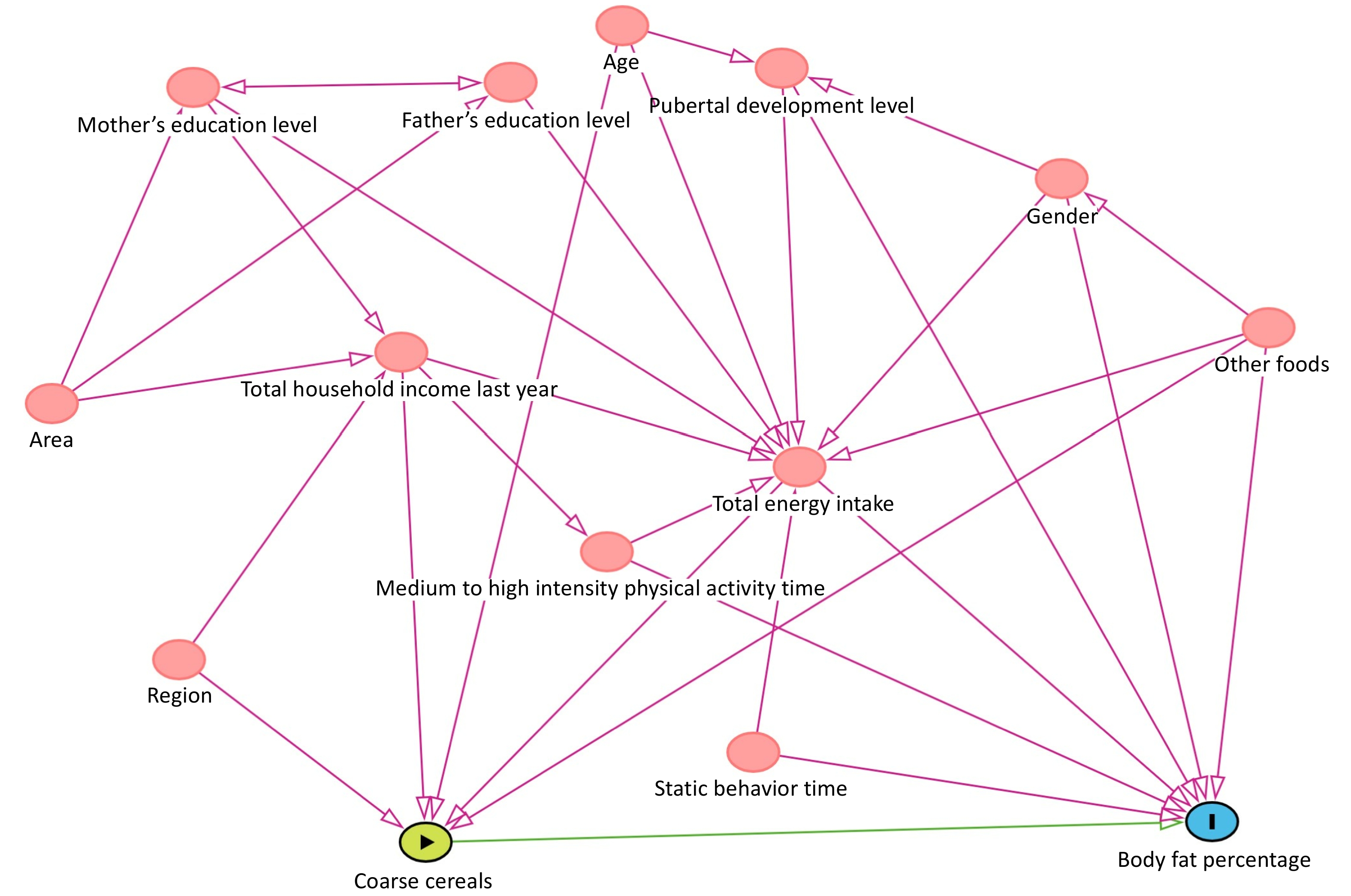 Objective The rising prevalence of childhood obesity is closely associated with suboptimal dietary patterns. To address this public health concern, we conducted a comprehensive study to examine the association between coarse cereals consumption and body fat percentage (BFP) in Chinese children and adolescents.Methods The study included 48,305 children aged 6–17 years from 28 districts/counties in 14 provinces across seven regions of China (24,152 girls and 24,153 boys). BFP was examined using bioelectrical impedance analysis in the early morning. Coarse cereals consumption was assessed using a Food Frequency Questionnaire and categorized into three groups: 0 g/1,000 kcal per day, 0–10 g/1,000 kcal per day, and > 10 g/1,000 kcal per day (daily consumption of coarse cereals × 1,000/total energy consumption). Quantile regression model was used to analyze the association between coarse cereals and BFP, adjusting for potential confounders such as age, pubertal development stage, urban/rural and regional factors, total daily dietary energy consumption, sedentary time, moderate-to-high physical activity, household income, parental education, and consumption of other foods.Results Boys aged 6–10, 11–14, and 15–17 years had median daily coarse cereals consumptions of 6.6 g, 7.1 g, and 5.7 g, with BFP of 19.6%, 19.5%, and 17.5% (all P < 0.05). Girls in the same age groups showed consumption of 7.1 g, 8.4 g, and 6.7 g, with BFP of 20.3%, 26.4%, and 31.0% (all P < 0.05). The quantile regression results for boys showed that daily consumption of coarse cereals was significantly correlated with their BFP in the 0.15, 0.25, and 0.50 quartiles, with regression coefficients of −0.257, −0.221, and −0.330, respectively, after adjusting for potential confounders (P < 0.05). For girls, there was a significant correlation with PBF at the 0.05, 0.15, 0.25, 0.50, 0.75, and 0.85 quartiles, with regression coefficients of −0.258, −0.366, −0.372, −0.431, −0.472, and −0.503 (P < 0.05 for all).Conclusions Coarse cereals consumption among Chinese children and adolescents remains relatively low. Higher consumption was inversely associated with BFP in children aged 6–17 years. Future interventional studies should assess how increased coarse cereals consumption prevents childhood obesity.
