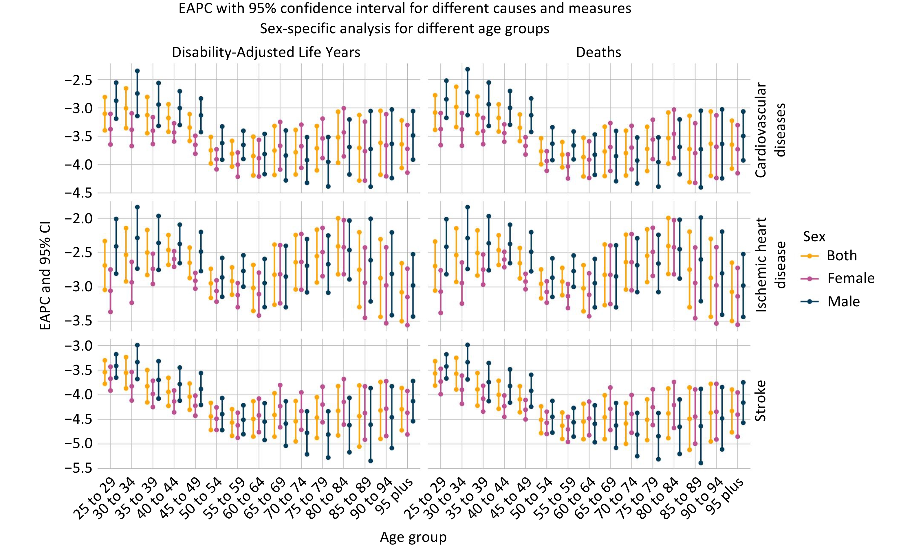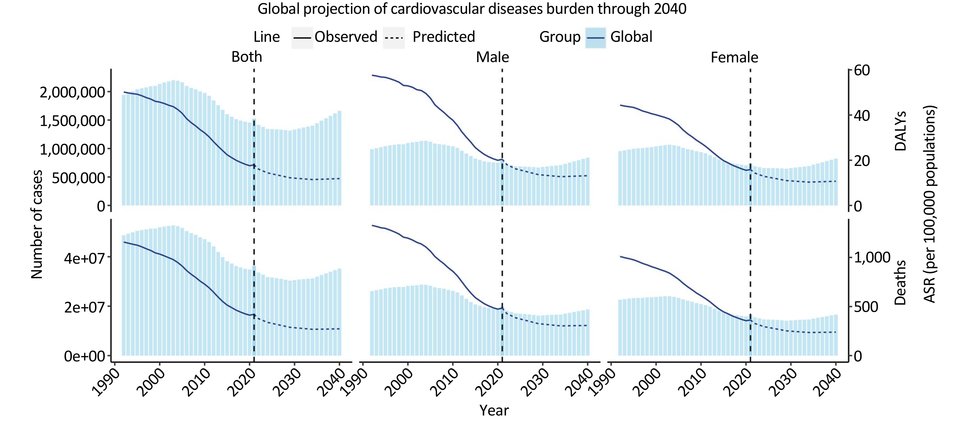Objective This study investigates the global, regional, and national cardiovascular disease (CVD) burden caused by household air pollution (HAP) from 1990 to 2021 across regions, time periods, sexes, and age groups. Methods The global CVD mortality and disability-adjusted life years (DALYs) attributable to HAP are analyzed to assess their current status and historical trends. Quantitative methods are used to assess health inequalities. Projections up to the year 2040 are made using the Nordpred method. Results In 2021, 0.758 million deaths and 18.175 million DALYs were attributed to HAP-related CVD, with age-standardized rates (ASR) for mortality and DALYs of 8.950 and 210.354 per 100,000 individuals, respectively. The disease burden increased with age and was higher in men. While mortality and DALYs rates have decreased over the past three decades, with more significant reductions in low- and middle-income regions, health inequalities persist despite improvements. Projections indicate a slow increase in the CVD burden attributable to HAP by 2040, even as the per capita rates decline. Conclusion Although significant reductions in CVD attributable to HAP have occurred globally, particularly in low- and middle-income countries, disparities persist. Health inequalities have improved but remain significant. As the global population grows and ages, total cases will increase, highlighting the need for continued, targeted interventions.