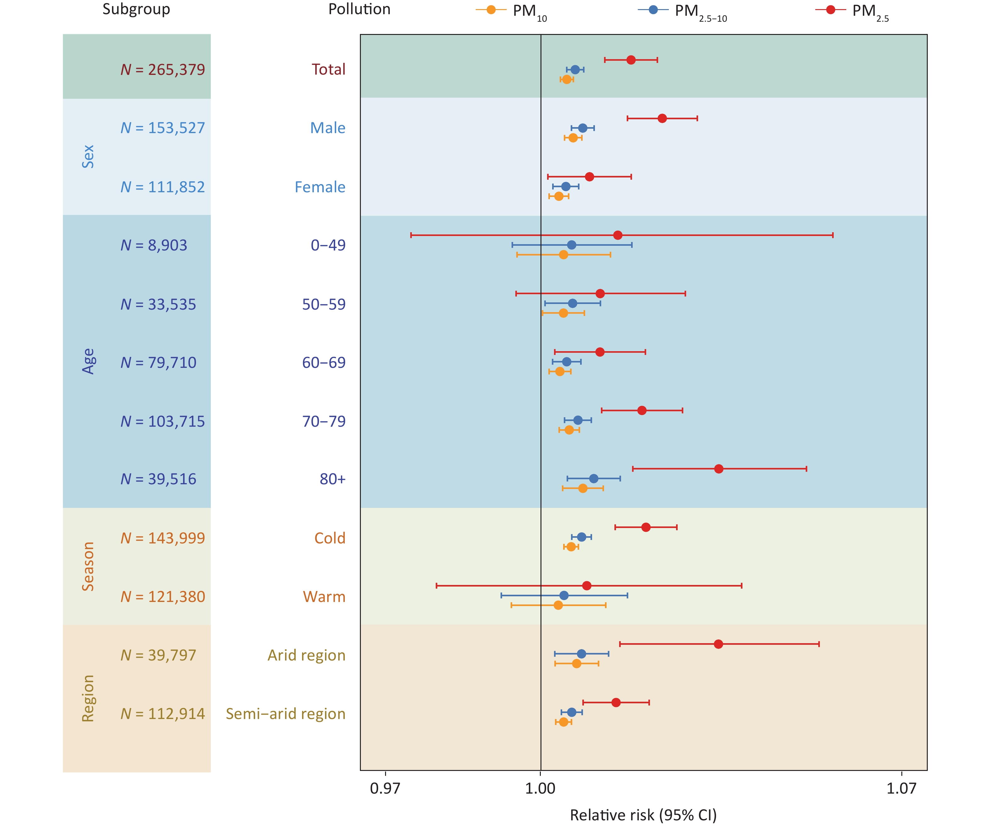 Objective Chronic obstructive pulmonary disease (COPD) is a major health concern in northwest China; however, the impact of particulate matter (PM) exposure during sand-dust storms (SDS) remains poorly understood. Therefore, this study aimed to investigate the association between PM exposure on SDS days and COPD hospitalization risk in arid regions. Methods Data on daily COPD hospitalizations were collected from 323 hospitals from 2018 to 2022, along with the corresponding air pollutant and meteorological data for each city in Gansu Province. Employing a space-time-stratified case-crossover design and conditional Poisson regression, we analyzed 265,379 COPD hospitalizations. Results PM exposure during SDS days significantly increased COPD hospitalization risk [relative risk (RR) for PM2.5, lag 3:1.028, 95% confidence interval (CI): 1.021–1.034], particularly among men and the elderly, and during the cold season. The burden of PM exposure on COPD hospitalization was substantially high in Northwest China, especially in the arid and semi-arid regions. Conclusion Our findings revealed a positive correlation between PM exposure during SDS episodes and elevated hospitalization rates for COPD in arid and semi-arid zones in China. This highlights the urgency of developing region-specific public health strategies to address adverse respiratory outcomes associated with SDS-related air quality deterioration.