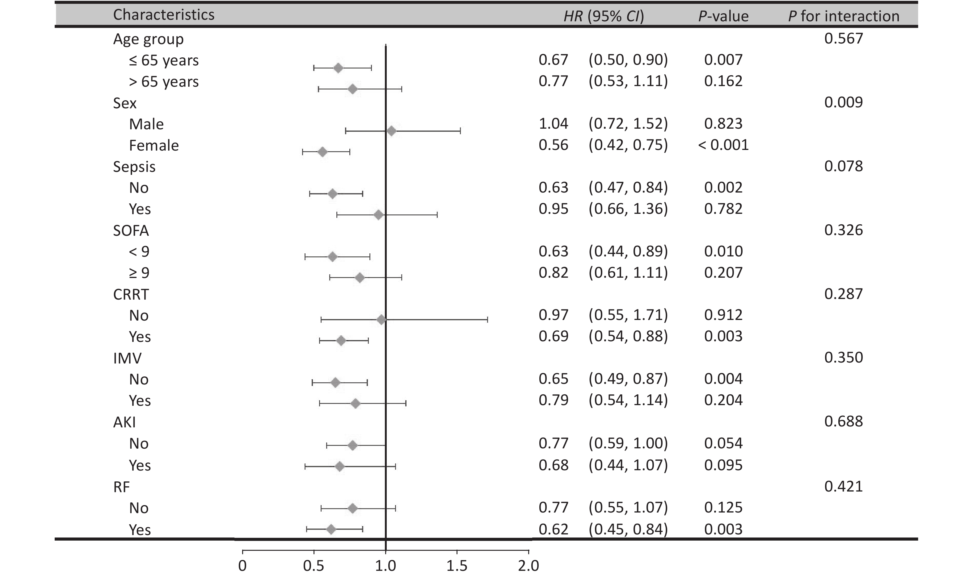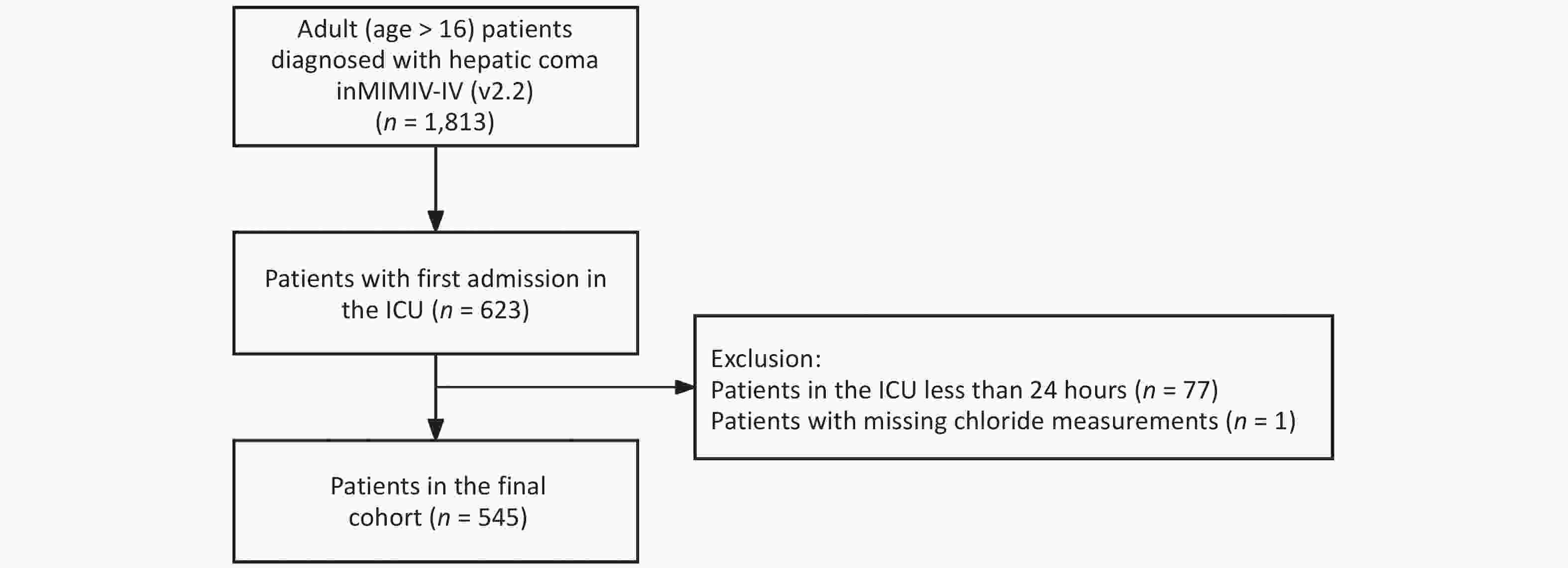 Objective To explore the relationship between serum chloride levels and prognosis in patients with hepatic coma in the intensive care unit (ICU). Methods We analyzed 545 patients with hepatic coma in the ICU from the Medical Information Mart for Intensive Care IV (MIMIC-IV) database. Associations between serum chloride levels and 28-day and 1-year mortality rates were assessed using restricted cubic splines (RCSs), Kaplan-Meier (KM) curves, and Cox regression. Subgroup analyses, external validation, and mechanistic studies were also performed. Results A total of 545 patients were included in the study. RCS analysis revealed a U-shaped association between serum chloride levels and mortality in patients with hepatic coma. The KM curves indicated lower survival rates among patients with low chloride levels (< 103 mmol/L). Low chloride levels were independently linked to increased 28-day and 1-year all-cause mortality rates. In the multivariate models, the hazard ratio (HR) for 28-day mortality in the low-chloride group was 1.424 (95% confidence interval [CI]: 1.041–1.949), while the adjusted hazard ratio for 1-year mortality was 1.313 (95% CI: 1.026–1.679). Subgroup analyses and external validation supported these findings. Cytological experiments suggested that low chloride levels may activate the phosphorylation of the NF-κB signaling pathway, promote the expression of pro-inflammatory cytokines, and reduce neuronal cell viability. Conclusion Low serum chloride levels are independently associated with increased mortality in patients with hepatic coma.