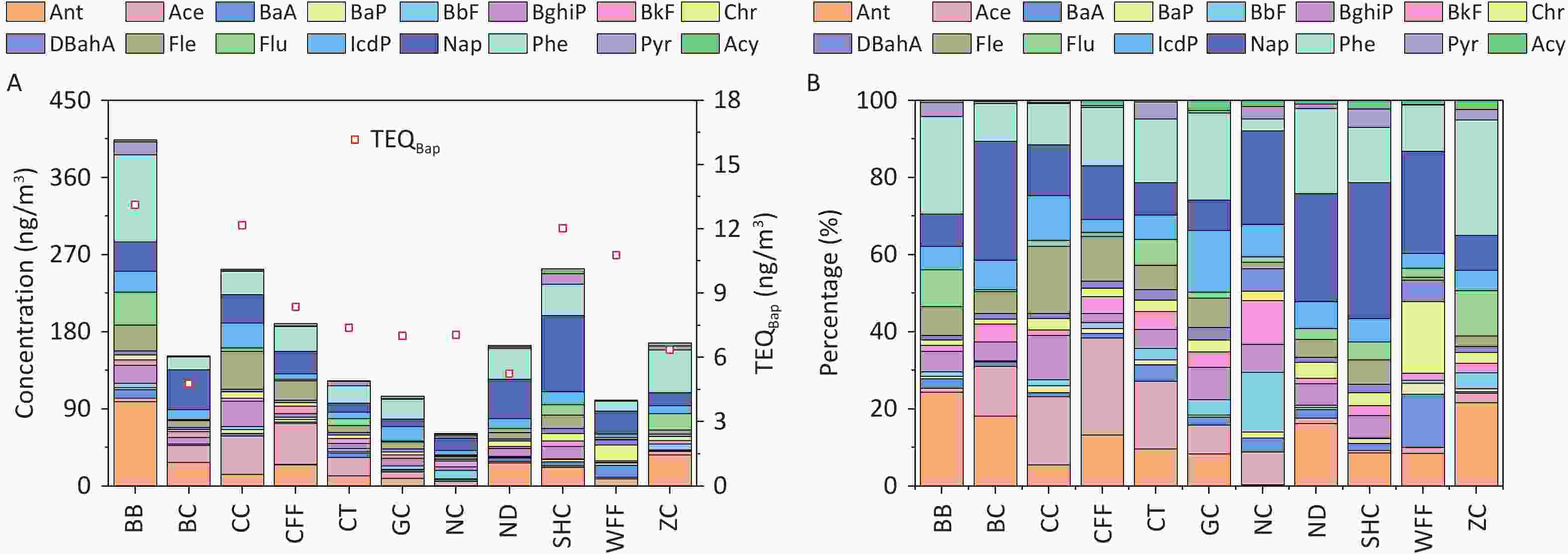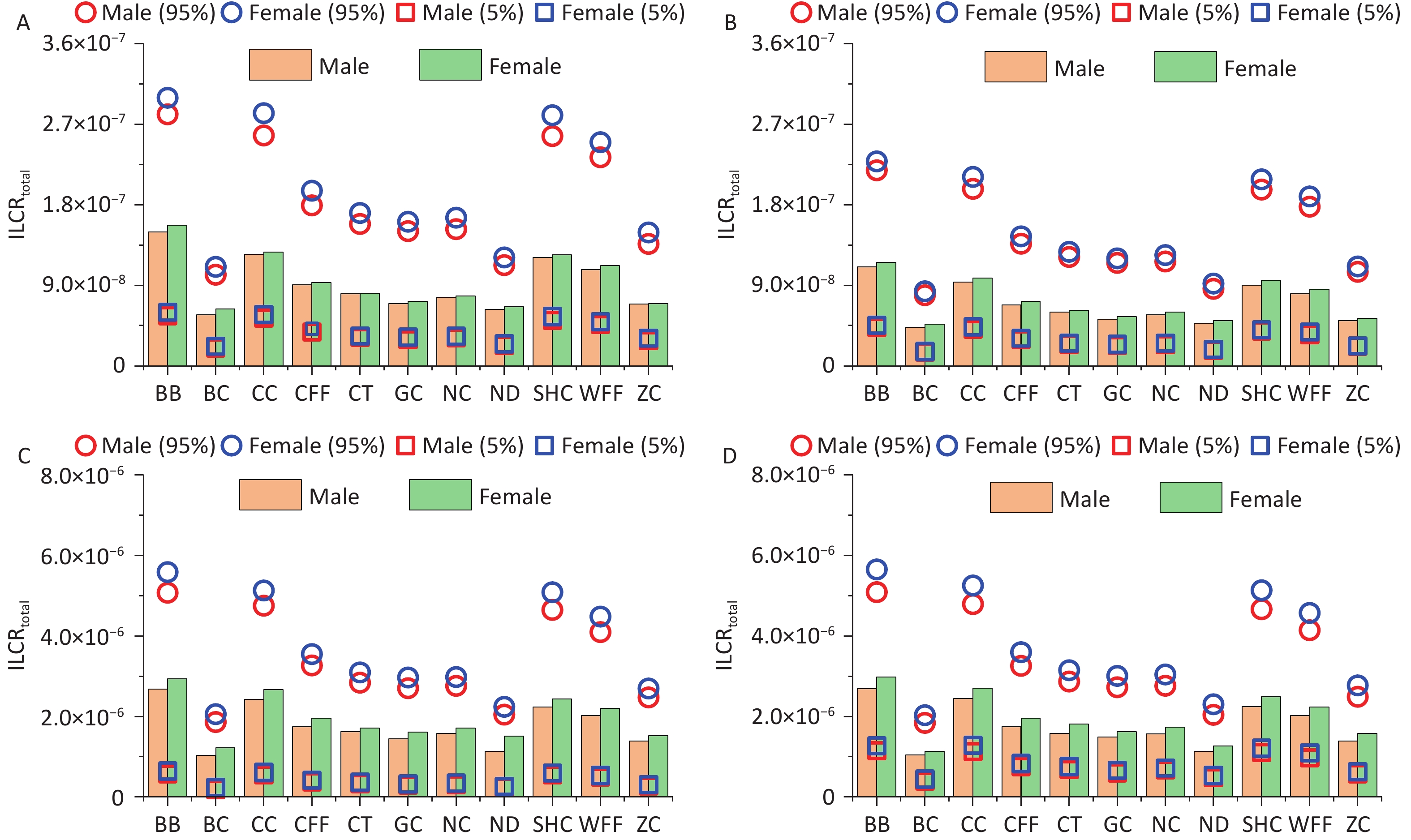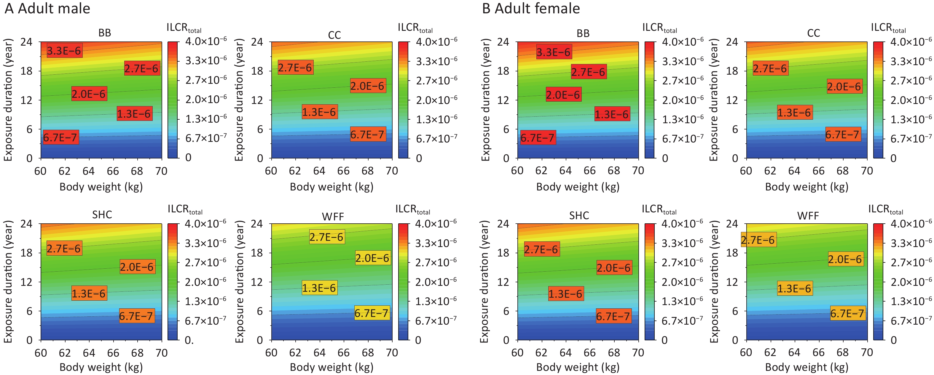 Objectives To characterize fine particulate matter (PM2.5)-bound polycyclic aromatic hydrocarbons (PAHs) emitted from different cooking fumes and their exposure routes and assess their health-associated impact to provide a reference for health risk prevention from PAH exposure across different age and sex groups. Methods Sixteen PM2.5-bound PAHs emitted from 11 cooking styles were analyzed using GC-MS/MS. The health hazards of these PAHs in the Handan City population (stratified by age and sex) were predicted using the incremental lifetime cancer risk (ILCR) model. The respiratory deposition doses (RDDs) of the PAHs in children and adults were calculated using the PM2.5 deposition rates in the upper airway, tracheobronchial, and alveolar regions. Results The total concentrations of PM2.5-bound PAHs ranged from 61.10 to 403.80 ng/m3. Regardless of cooking styles, the ILCRtotal values for adults (1.23 × 10−6 to 3.70 × 10−6) and older adults (1.28 × 10−6 to 3.88 × 10−6) exceeded the acceptable limit of 1.00 × 10–6. With increasing age, the ILCRtotal value first declined and then increased, varying substantially among the population groups. Cancer risk exhibited particularly high sensitivity to short exposure to barbecue-derived PAHs under equivalent body weights. Furthermore, barbecue, Sichuan and Hunan cuisine, Chinese cuisine, and Chinese fast food were associated with higher RDDs for both adults and children. Conclusion ILCRtotal values exceeded the acceptable limit for both females and males of adults, with all cooking styles showing a potentially high cancer risk. Our findings serve as an important reference for refining regulatory strategies related to catering emissions and mitigating health risks associated with cooking styles.