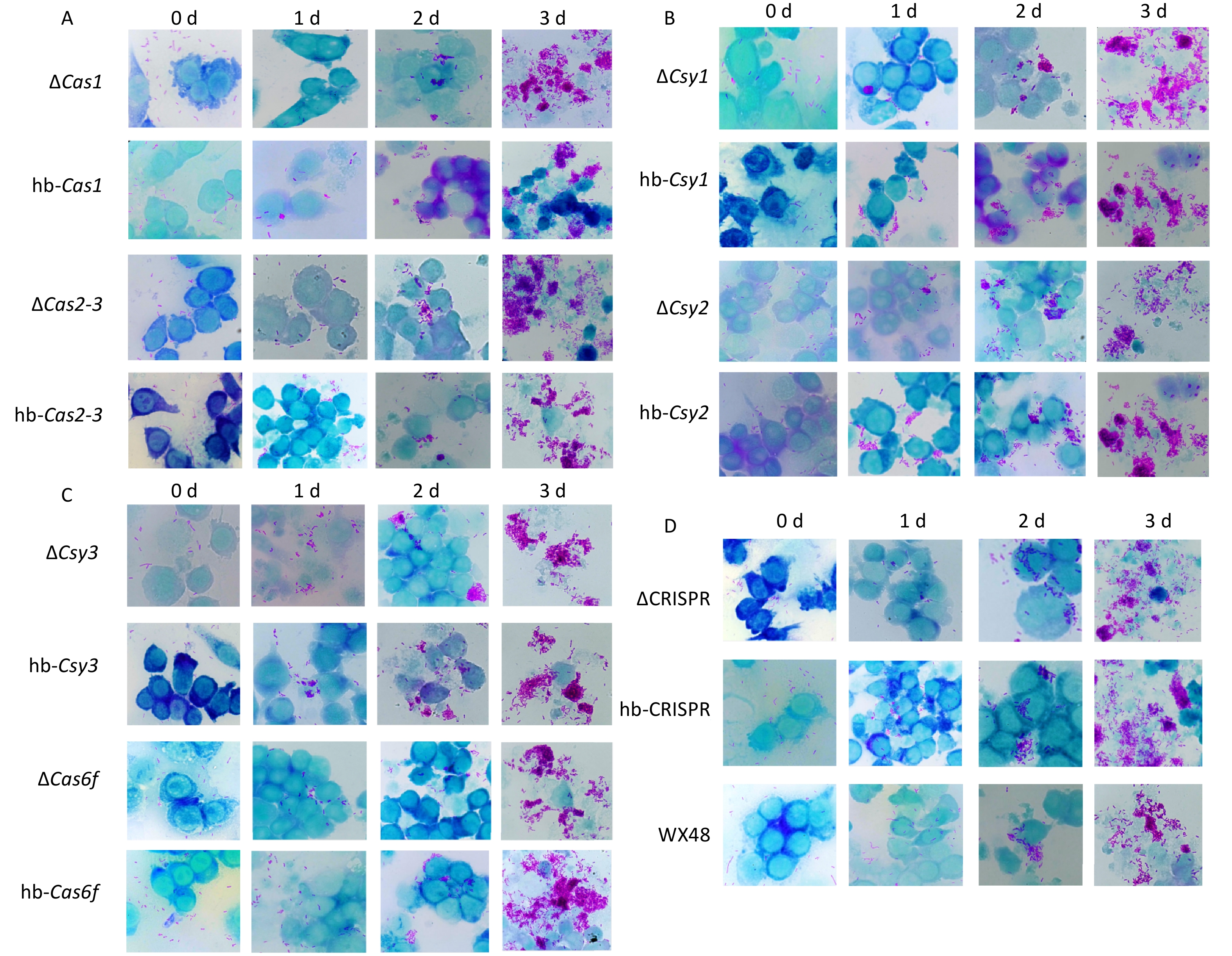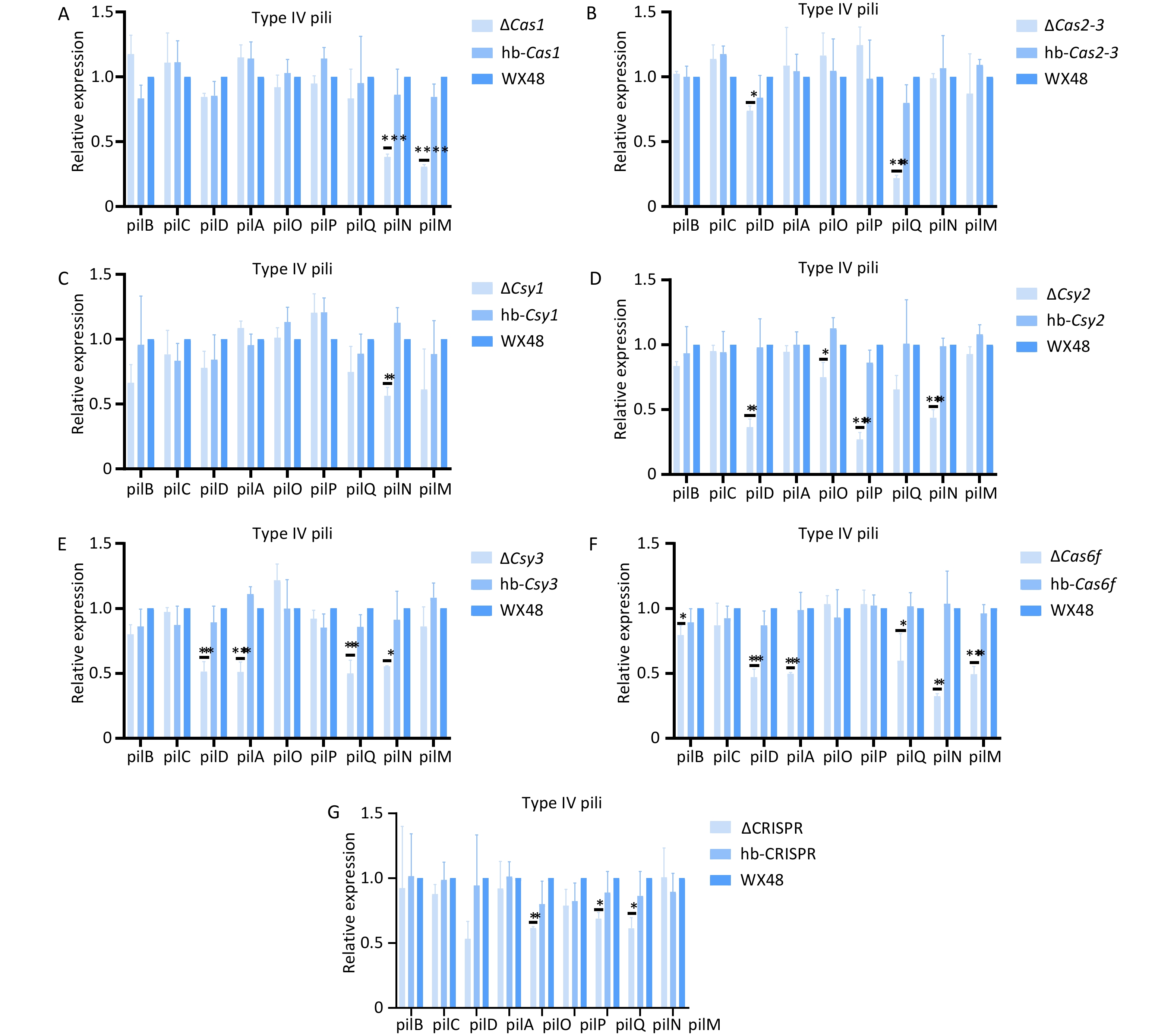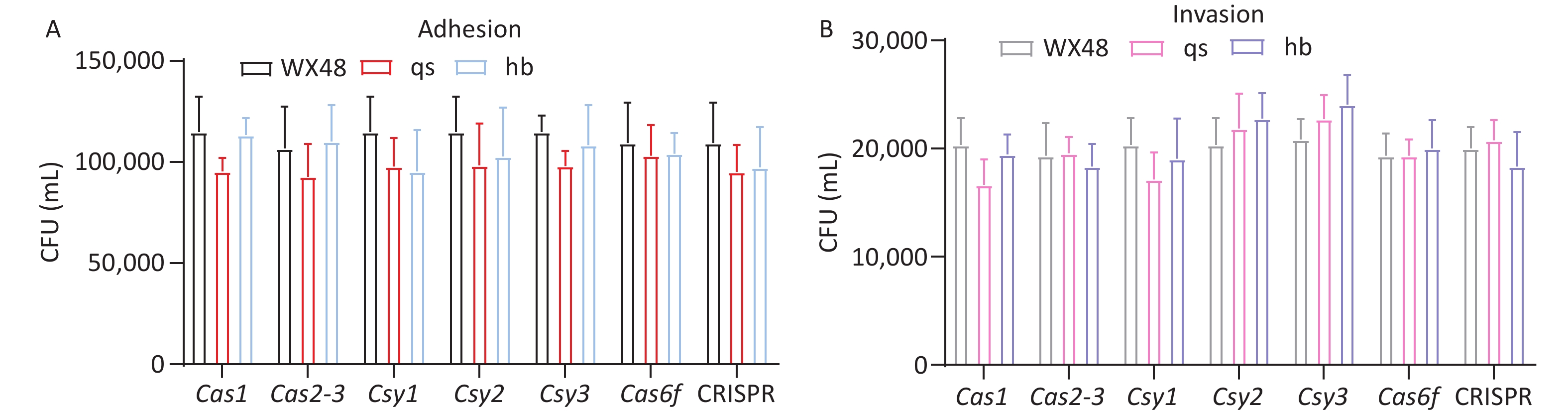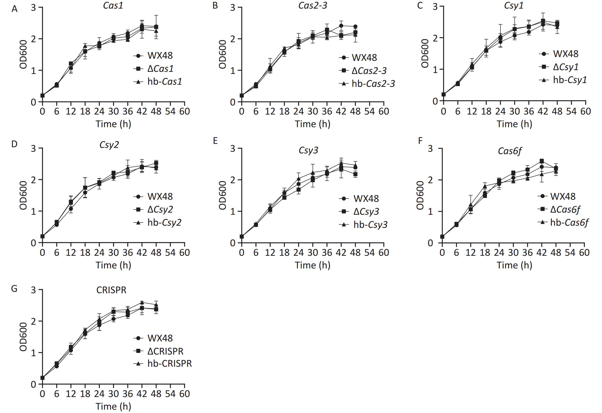 Objective CRISPR-Cas protects bacteria from exogenous DNA invasion and is associated with bacterial biofilm formation and pathogenicity. Methods We analyzed the type I-F CRISPR-Cas system of Legionella pneumophila WX48, including Cas1, Cas2-Cas3, Csy1, Csy2, Csy3, and Cas6f, along with downstream CRISPR arrays. We explored the effects of the CRISPR-Cas system on the in vitro growth, biofilm-forming ability, and pathogenicity of L. pneumophila through constructing gene deletion mutants. Results The type I-F CRISPR-Cas system did not affect the in vitro growth of wild-type or mutant strains. The biofilm formation and intracellular proliferation of the mutant strains were weaker than those of the wild type owing to the regulation of type IV pili and Dot/Icm type IV secretion systems. In particular, Cas6f deletion strongly inhibited these processes. Conclusion The type I-F CRISPR-Cas system may reduce biofilm formation and intracellular proliferation in L. pneumophila.